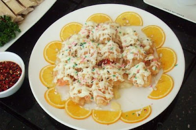 第一道菜,蝦球 (跟家人出去很難拍到完整的菜,不是少了幾顆就是多了一隻手)